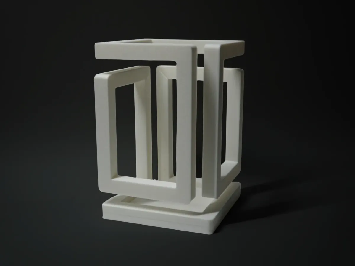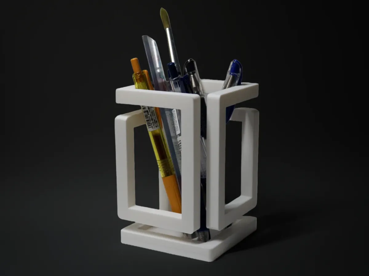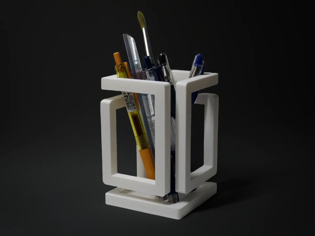 The holder is inspired by the shape of an infinity / illusion cube, allowing you to effortlessly store pens, pencils, brushes, and other stationery items, all while decorating your workspace with its sleek and modern design.