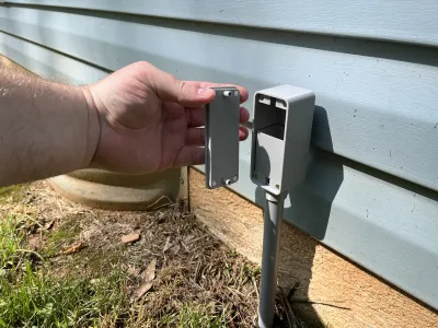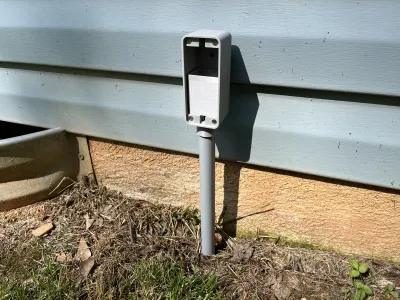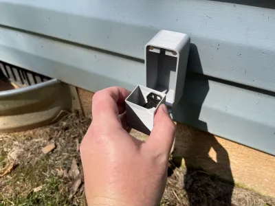 This is a clever and discreet way to hide a spare house key in case you ever get locked out. The box looks like a common electrical conduit box, so it blends in well. It's held closed with magnets, making it easy to open when needed. Inside, there’s space to store your keys or other small items. It also has drain holes to let out any water that might get in.