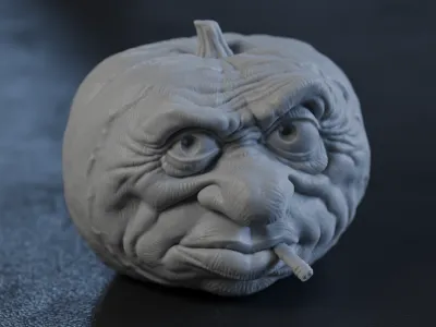 Grumpy Pumpkin sculpted in Zbrush, design by Yan Blanco (No A.I.)