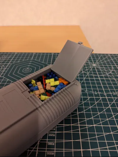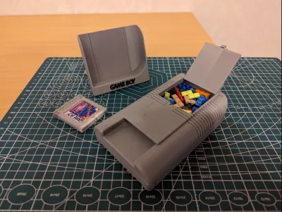 In the Battery storage you can store the Bricks, there is a Gameboy game that you can insert in the Gameboy. For the Battery Case you need a Little bit of filament to make the hinge.