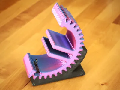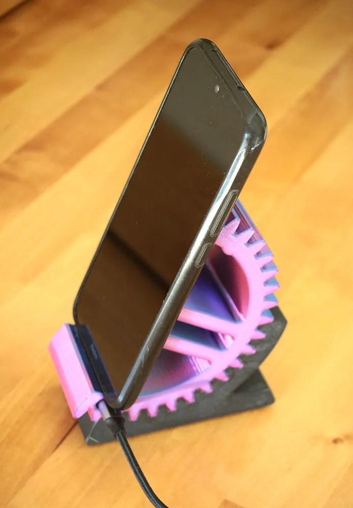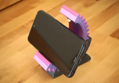 This original work was built from scratch, but partly inspired by Devin Gentner's 2017 design https://www.myminifactory.com/object/3d-print-gear-phone-holder-43403, plus the “euro” idea from https://www.thingiverse.com/thing:4982411/files