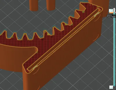 A thin metal plate can be slotted into the base as ballast, which really helps stabilise the stand when a phone is placed on it. Just set the slicer to pause the printer at the correct layer, slot in the metal plate, then continue the print. Any dense metal (not aluminium) can be used: I used 2mm stainless steel. Before printing, measure the plate and adjust the model so it fits well. The “100×50mm” plate I bought was actually 91.2×45.5mm.
