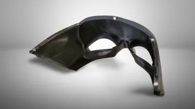 The ears are split with an additional seam; however, alignment geometry has been added to both the ears and helmet to assist with accurate assembly using adhesive.