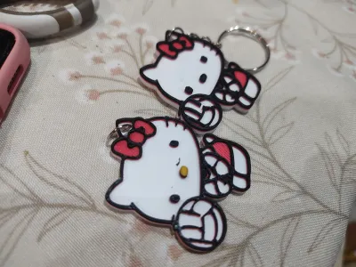 🎾🐱 ¡Nuevo diseño en camino! Me pidieron crear un llavero de Kitty jugando al vóley 🏐. La idea era mantenerlo simple para imprimir, sin necesidad de impresora multicolor (aunque también hay un archivo específico para eso 😉).