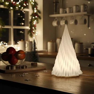 Create a magical, cozy atmosphere with this Spiral Christmas Tree. Its captivating, flowing shape is designed to be illuminated, transforming from a modern sculpture into a beautiful, glowing lamp. Whether on a table, desk, or mantle, its unique form and warm light instantly build a festive and elegant holiday mood.