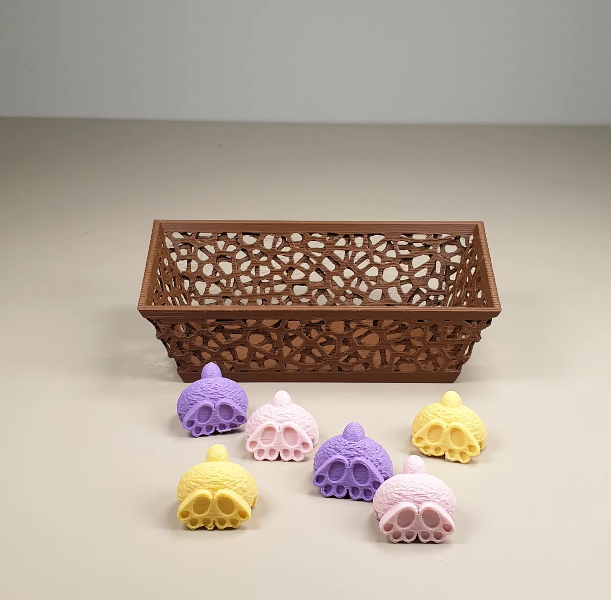 The bunnies need supports but are a straightforward print, keep them in the orientation they come in.