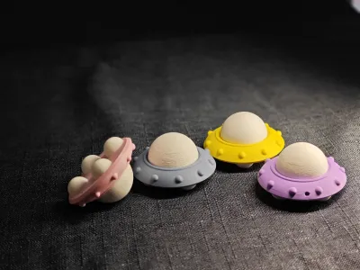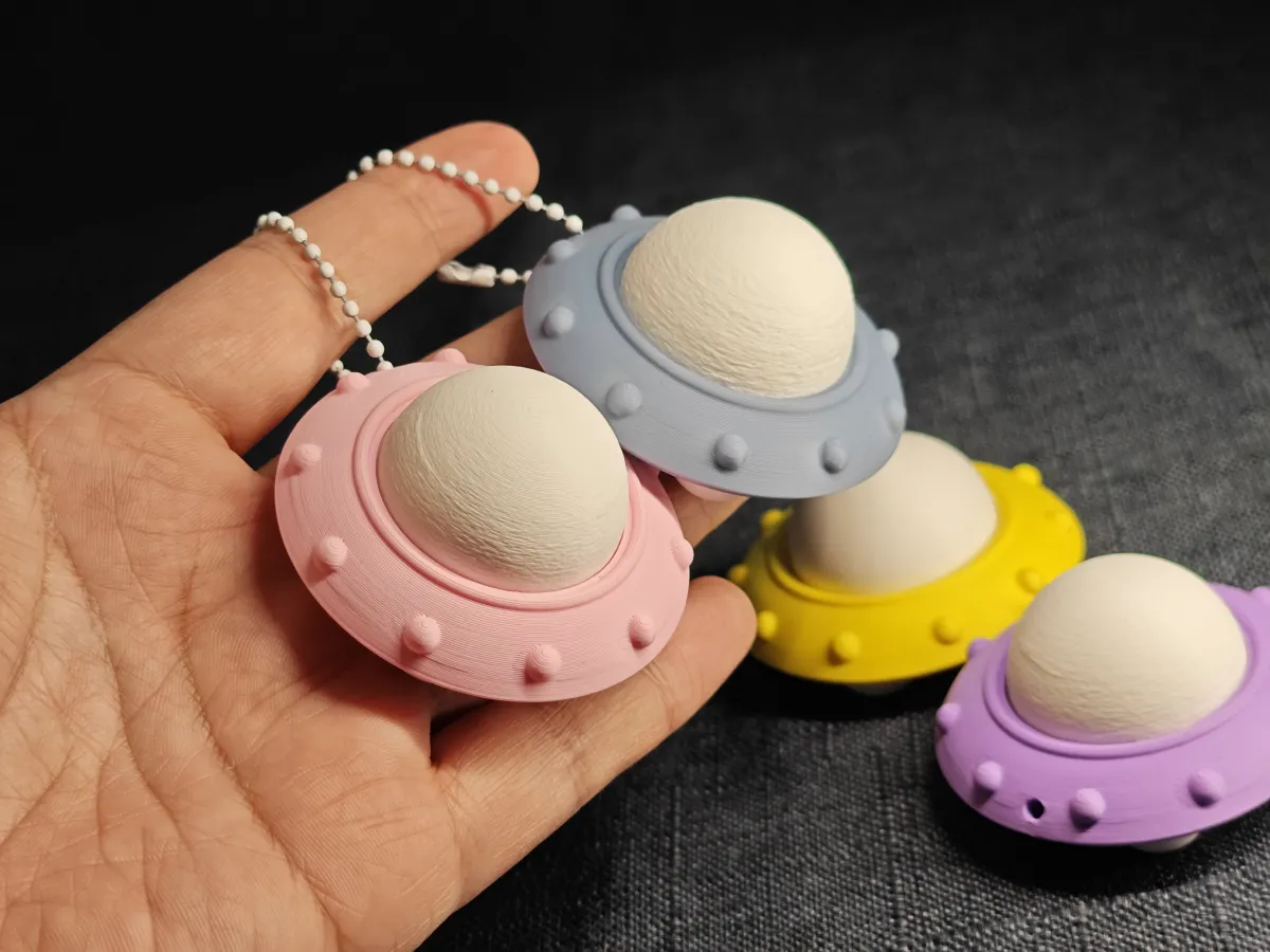 This is a UFO‑shaped ratchet stress‑relief toy that can be twisted in both directions, producing a satisfying “click-clack” sound.