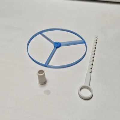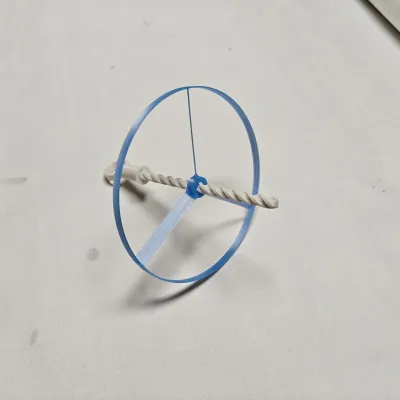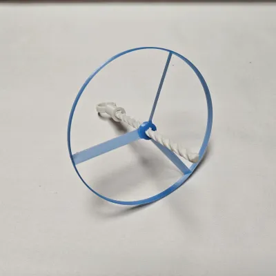 Once the model is printed, simply slide the sleeve over the screw, then insert the bamboo dragonfly. Grasp the bottom ring with one hand and push the sleeve upward with the other—this will launch the bamboo dragonfly into flight. We suggest using this model outdoors; it can achieve a flight altitude of up to 20 meters. Before use, be sure to remove any burrs from the screw, then run the screw up and down a few times after inserting the bamboo dragonfly—the screw will become exceptionally smooth. I personally used PETG filament; thanks to its material properties, the surface is particularly slick, delivering outstanding performance.