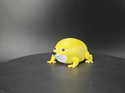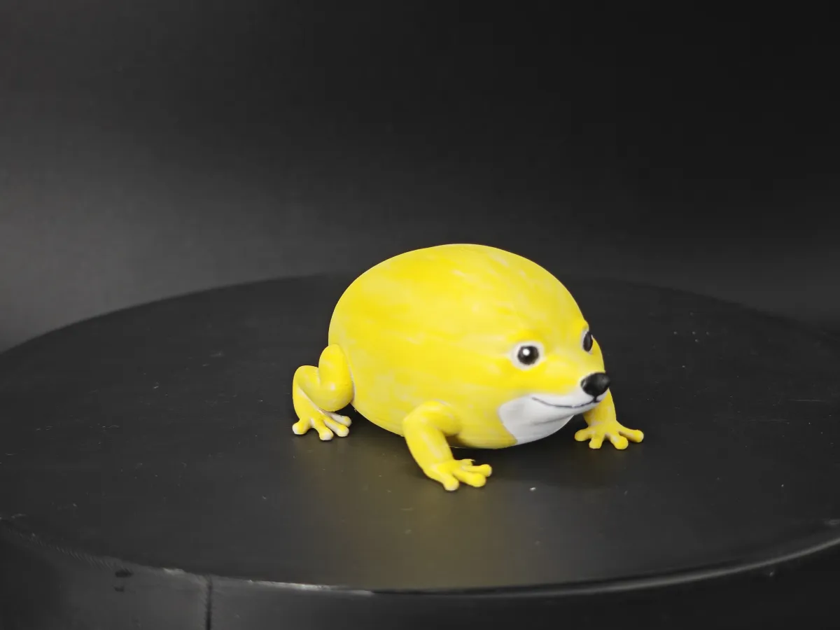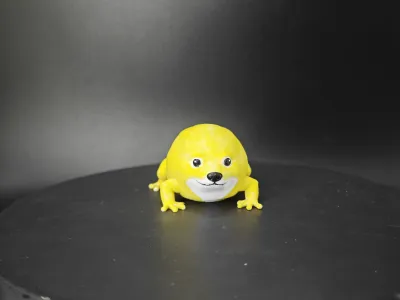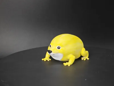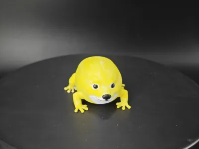 The design is a Shiba Inu shaped like a frog.