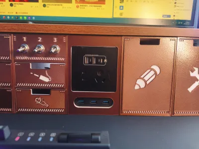 86盒+USB | ![]() | 1.桌面直接集成86盒可以直接供电及usb充电用,也可以自行安装各种其他面板比如以下 ![]() 2. 集成电脑usb3.0 hub独立供电最高能带动18T移动硬盘 我用的是 绿联的 usb hub,保持桌面简介且功能不缺 |
