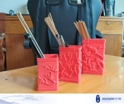 This model takes such a traditional Chinese painting as its inspiration, resulting in a set of three square-cross-section pen holders available in different sizes: