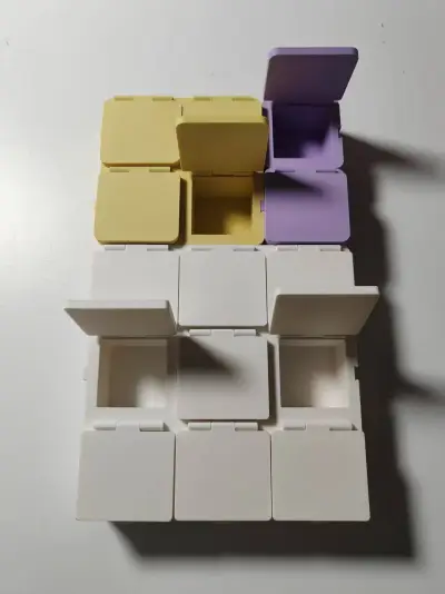 To accommodate different-sized items, I designed three configurations: 3x3, 2x2, and 1x1, which can be freely combined and arranged.
