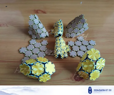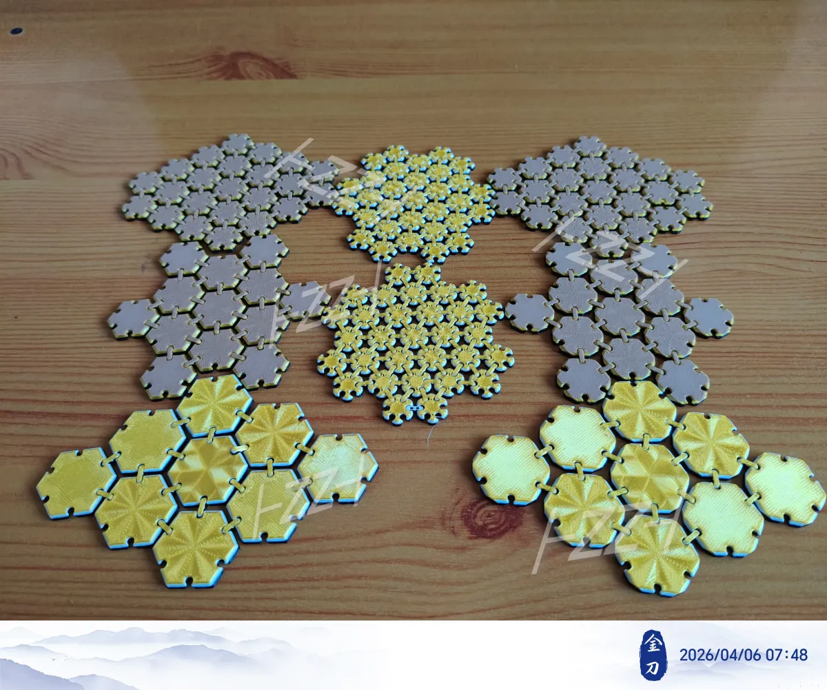 此系列模型以几何正六边形为基础单元,采用卡扣式铰链结构进行连接,