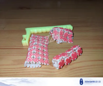 因连杆部分较小,几乎贴近FDM打印机的最小极限,加之FDM打印件的强度,请选用强度和层粘有一定强度的耗材,经多次打印测试,最低要求耗材为PLA Basic,大部分丝绸类是强度是很弱的,尤其是层粘方面,拆装时连杆很容易就坏了,成了一次性的。
