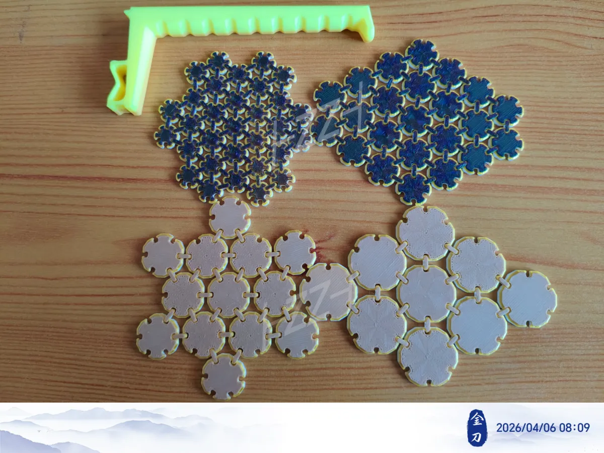 此系列模型以几何正六边形为基础单元,采用卡扣式铰链结构进行连接,
