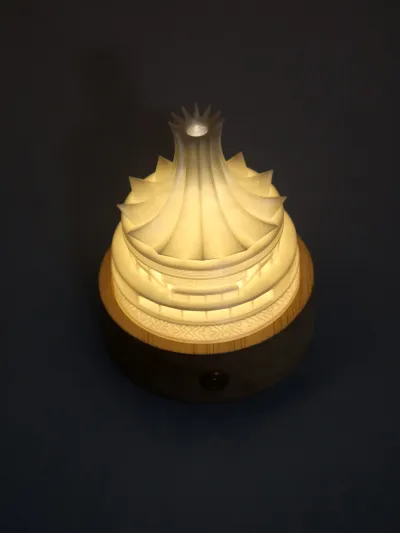 The lamp base is a round fixture sourced from AliExpress, powered by batteries, with an outer diameter of 8 cm and an inner diameter of roughly 7 cm. Of course, you can easily adjust the model’s dimensions and print it to fit your preferred lamp base.