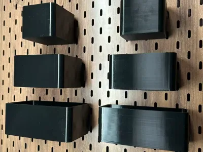 IKEA pegboard storage box with a 6.5 cm high opening, which can be secured at an angle.