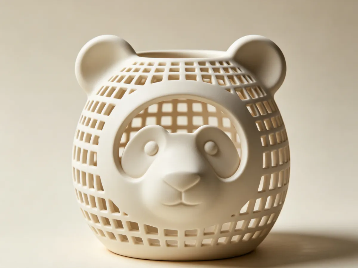 The design features an all-over hollowed-out structure. The round, plump panda head is irresistibly cute and endearing, with three-dimensional rounded ears and intricately embossed panda-face details that add depth and charm. The delicate grid-patterned hollowing across the body not only gives the piece a light, airy feel perfect for summer but also allows you to place a small night light inside, casting a soft, warm glow and instantly elevating the ambiance.