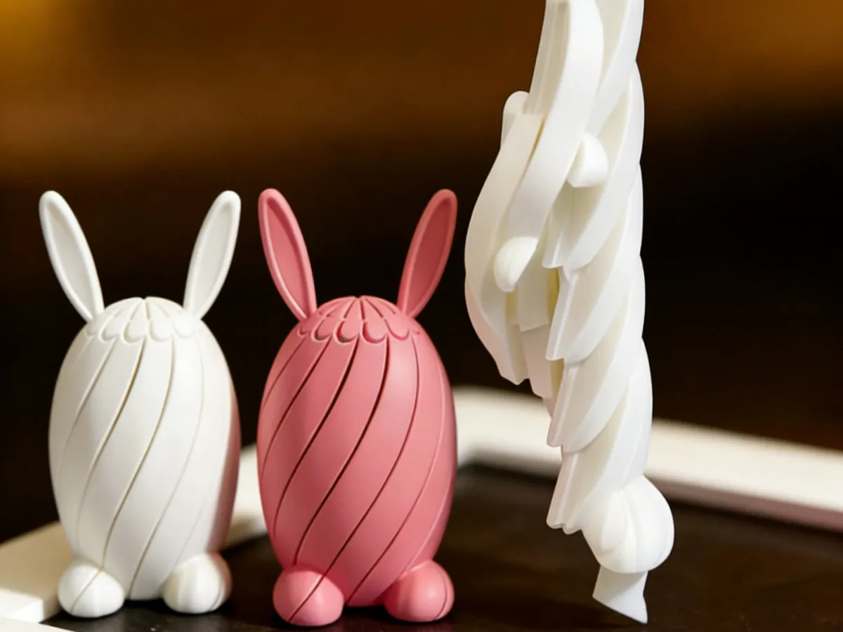 A specially designed stress-relief twist-egg model that combines the motifs of an egg and a rabbit. Lift one of the ears, and the model will twist in response—making it easy to print. The overall design is minimalist, making it suitable both as an office stress-relief toy and as a decorative display piece.