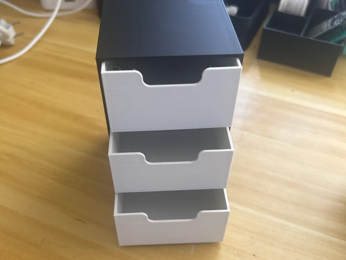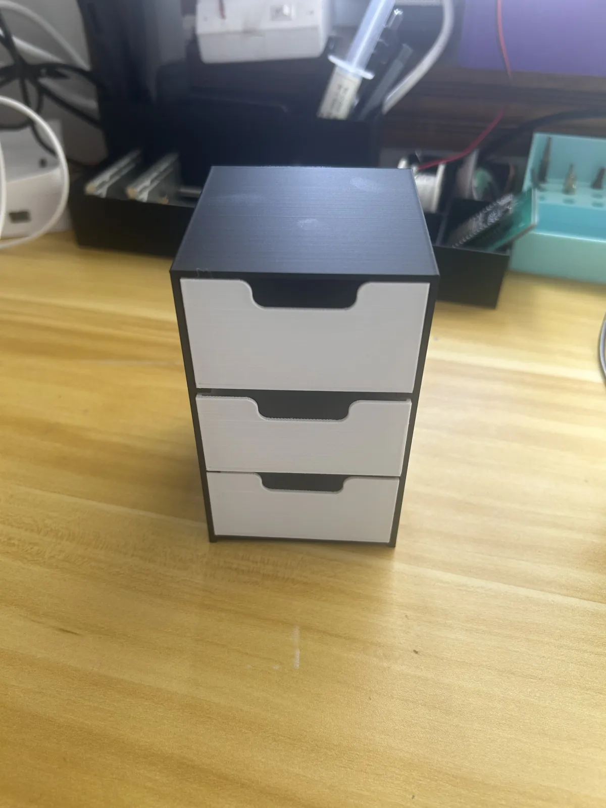 This is a three-tier, drawer-style desktop organizer designed specifically to keep small, miscellaneous items neatly arranged on your desk or workbench.