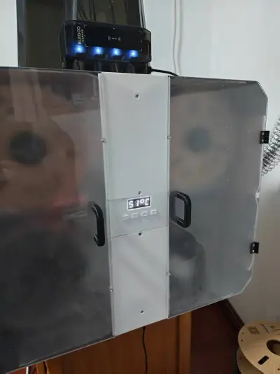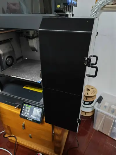 You’ll need M3 screws for assembly. The door was laser‑cut from acrylic based on a CAD file I found online, complete with hinges measuring 32 x 25 x 1.5 mm. The interior sidewalls of the enclosure are lined with thermal insulation foam.