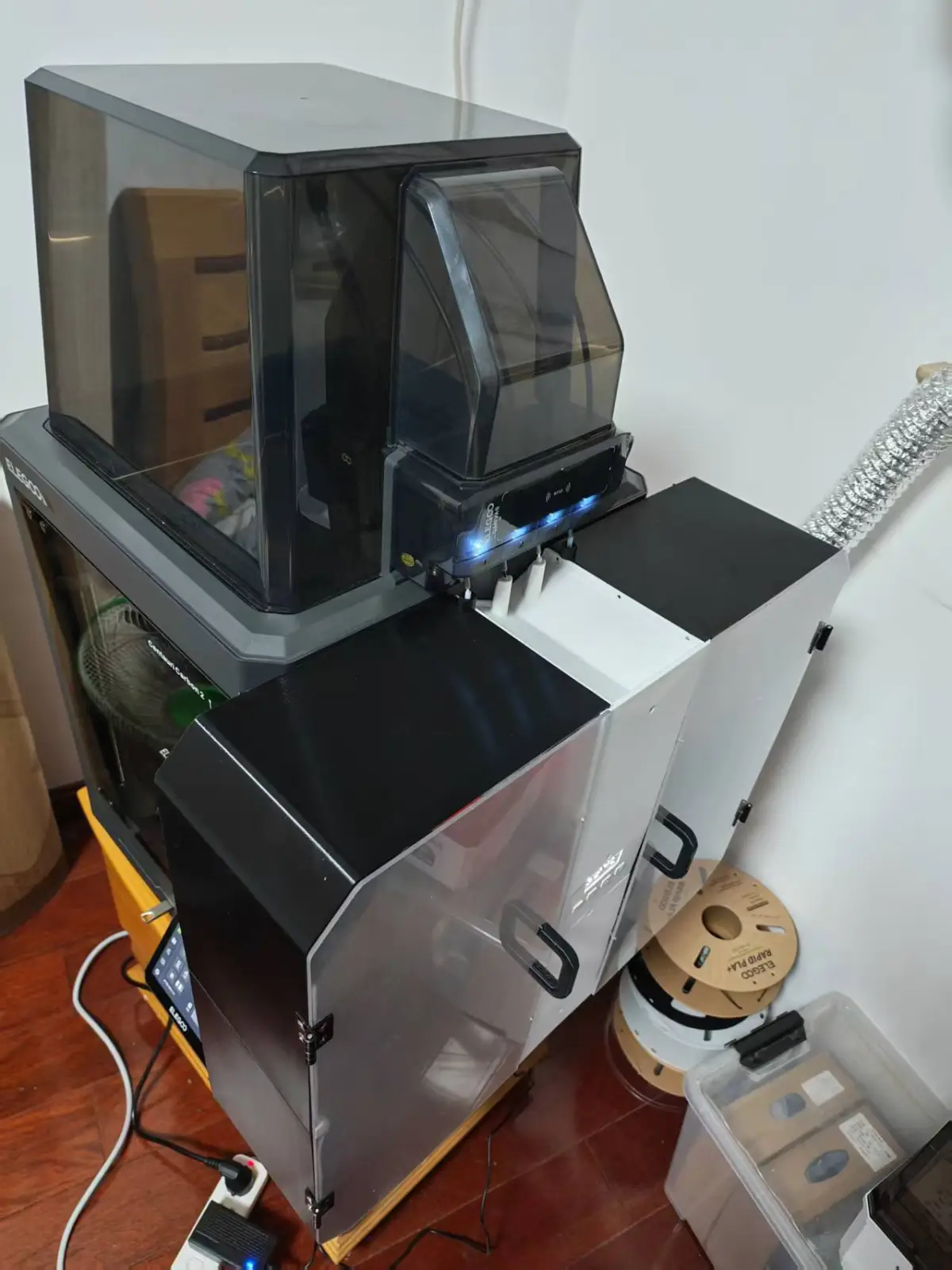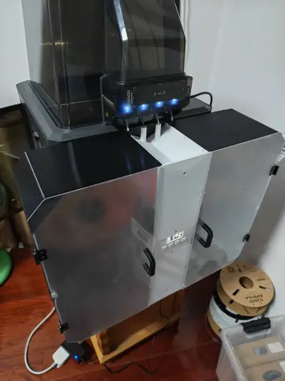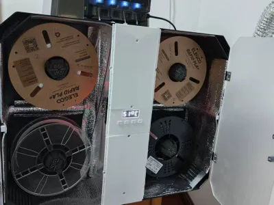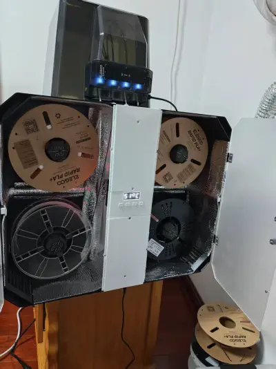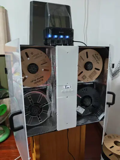 The drying assembly was repurposed from the original 2‑tray unit I’d bought. Inside, you’ll find buttons, a display screen, temperature sensors, humidity sensors, a heating plate, a fan, and a power supply. If you don’t need drying functionality, you can modify the model yourself—there are dedicated slots at each corner for placing desiccant packets.
