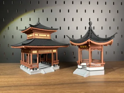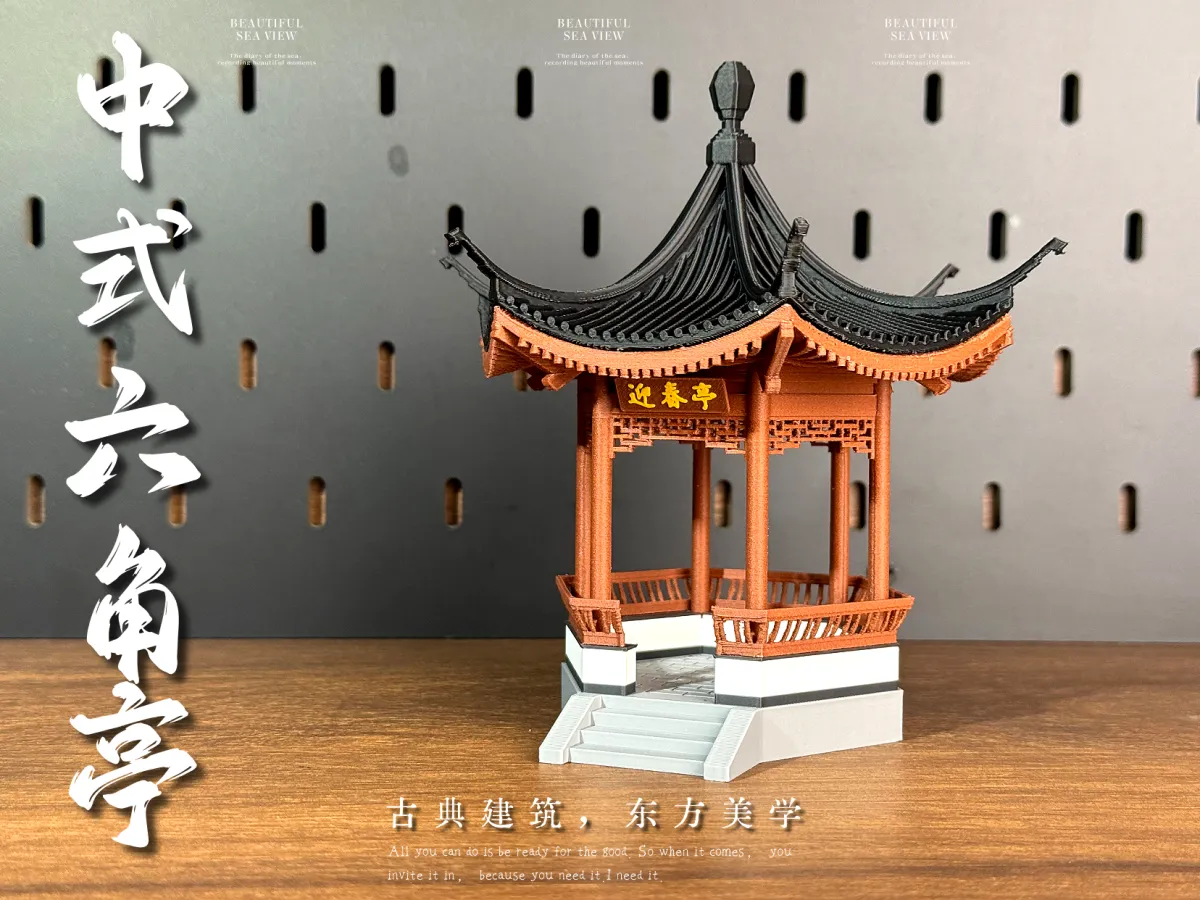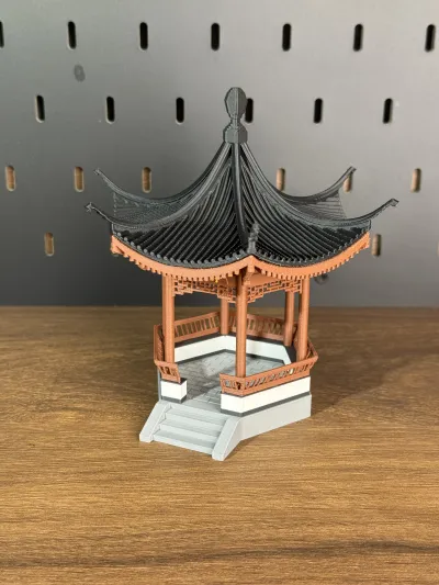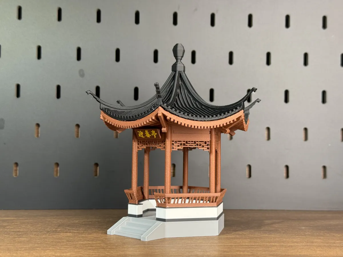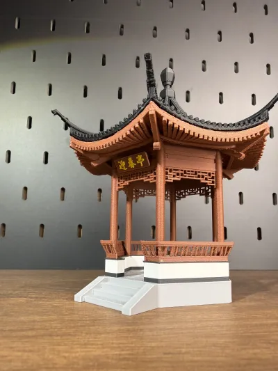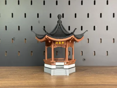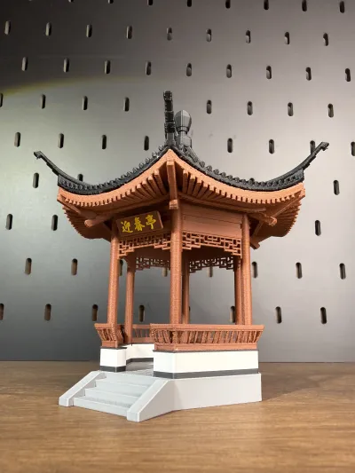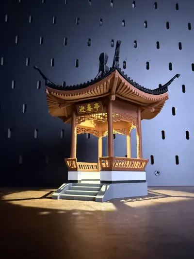 A Chinese-style garden pavilion in a 1:50 scale; the plaque can be customized with a name of your choice and should be secured using quick-drying adhesive.