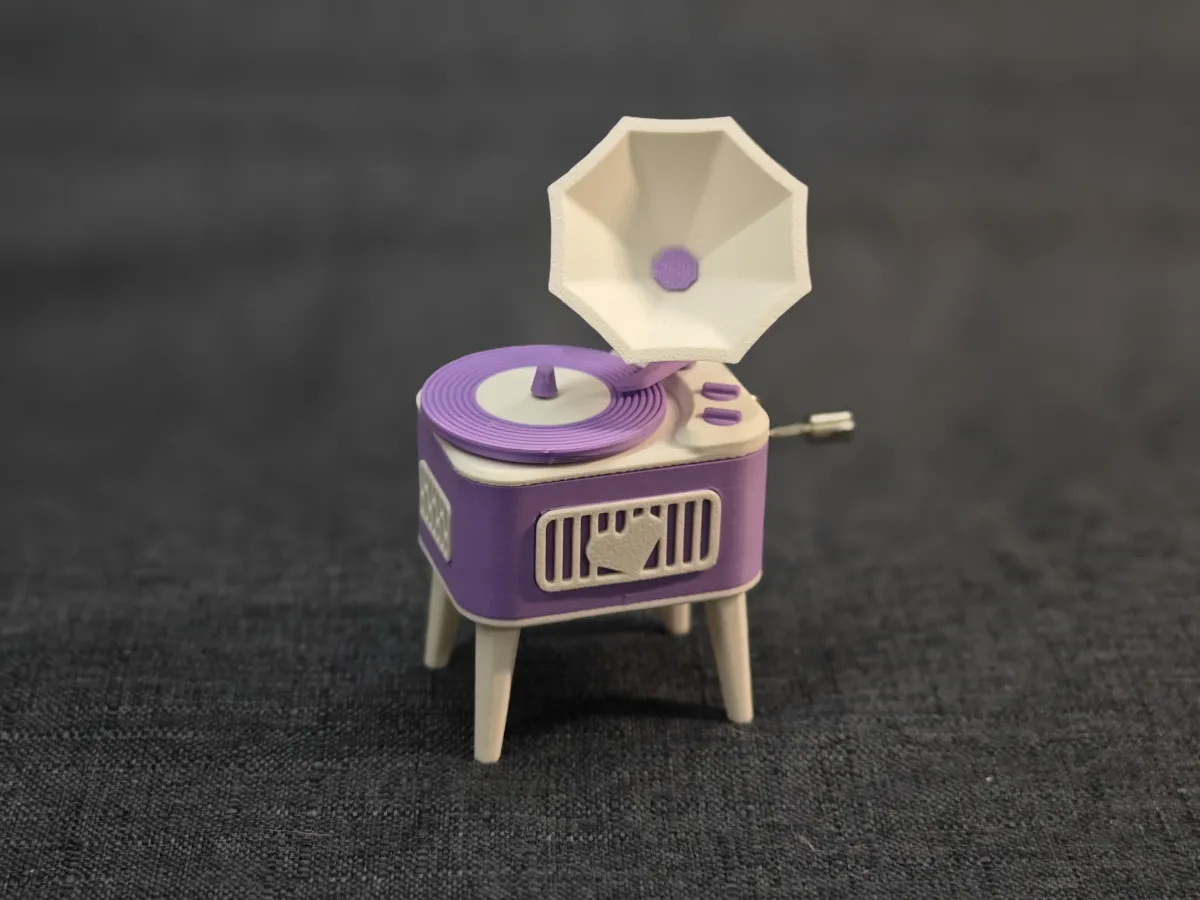 The model is compatible with standard hand-crank music-box movements, as shown in the following image.