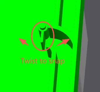 The ball outlet is integrally printed and must be twisted open.