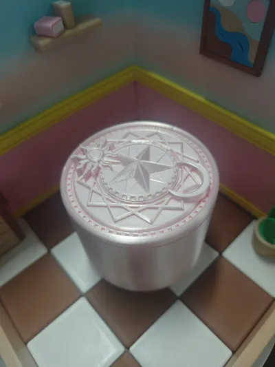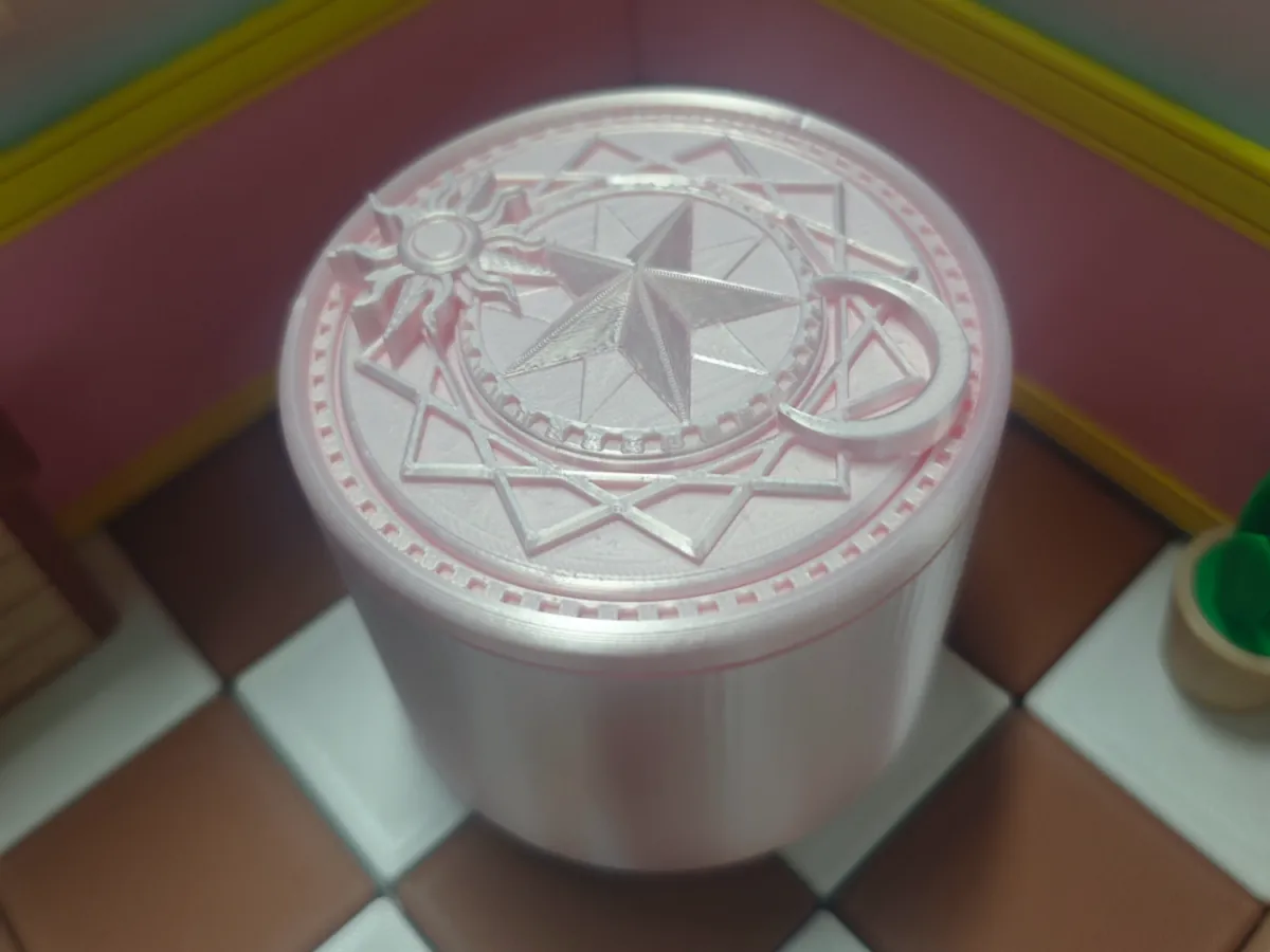 Magical-patterned small jewelry storage box: the lid is rotatable and the lid top is replaceable; printed in separate parts, no supports required. We recommend printing with silk powder filament for its pearlescent finish, which delivers a dreamy, soft glow.