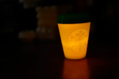 Core design: The front of the cup features a cut-out/relief-style Starbucks double-tailed mermaid logo. When a warm-yellow LED candle light source is embedded inside, the light shines through the logo, creating a soft, glowing effect—serving as both a night light and a stylish desk decoration.