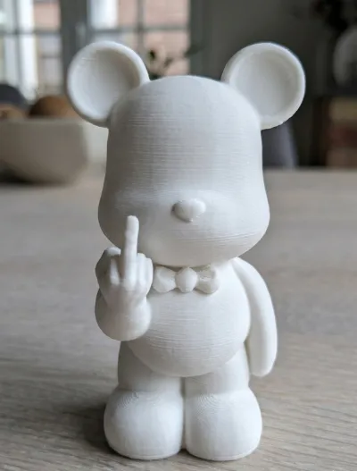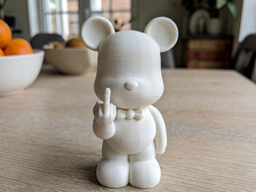 Here’s a super unique, quirky, and edgy Violent Bear 3D-printed model! Its rounded, adorable shape is paired with an ultra-rebellious middle-finger gesture, creating a striking contrast—making it the perfect choice for trendy toy enthusiasts and those seeking a one-of-a-kind decorative piece!