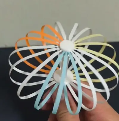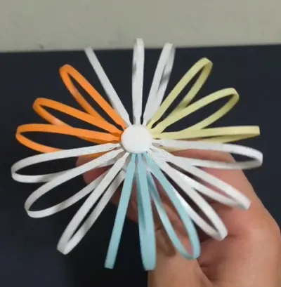 Its design is ingeniously crafted: at the center is a fixed base, while the radially arranged “petal” strips lie flat after printing, resembling a colorful starburst. Yet with a gentle tug on the central spindle, all the strips instantly lift and fold, magically transforming into a plump, three-dimensional “bud” shape; release the pull, and they slowly spring back to their original flat, star-shaped configuration.