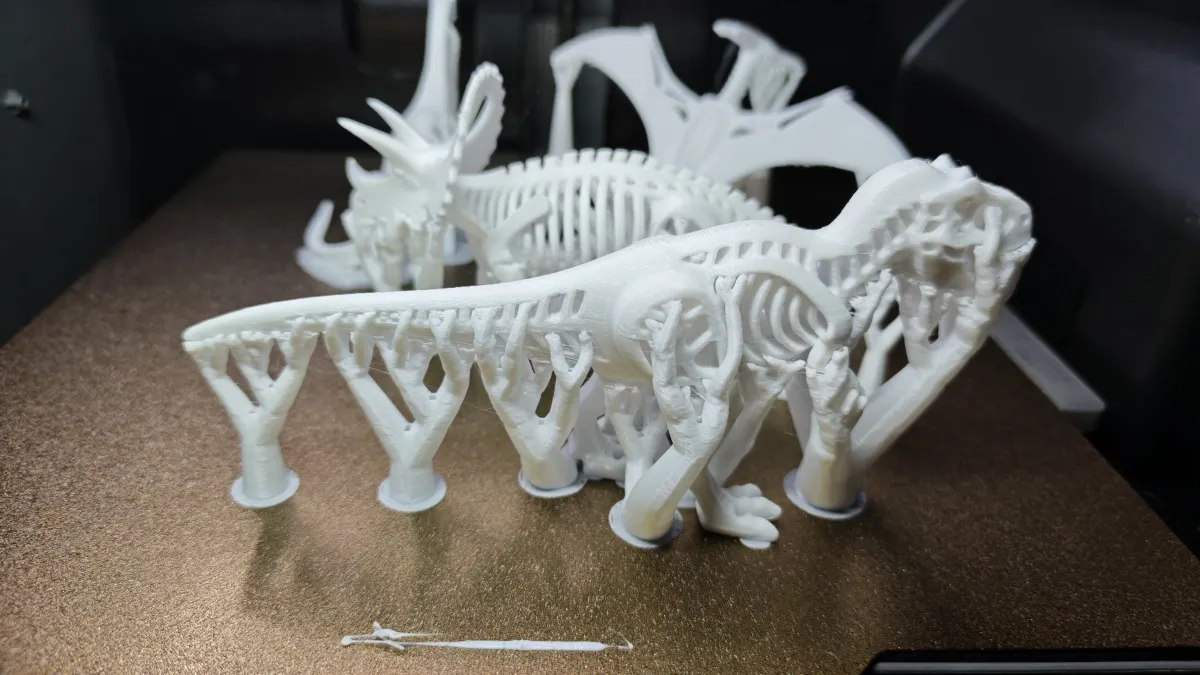 This white 3D‑printed Tyrannosaurus rex skeleton model boasts lifelike proportions and meticulously rendered bone structure, capturing the awe‑inspiring majesty of this prehistoric giant. Featuring a hollowed‑out design that balances intricate detail with lightweight elegance, the model exhibits perfectly proportioned form and a harmonious blend of scientific accuracy and artistic flair. Ideal for use as an educational tool for children, a decorative tabletop piece, a miniature exhibit in museums, or a scenic element in board games, this model is well suited for educational settings, collections, themed displays, and more—engaging learners while fostering curiosity about ancient life and enhancing the sense of exploration in any space. It’s the perfect choice for turning learning into an enjoyable, immersive experience.