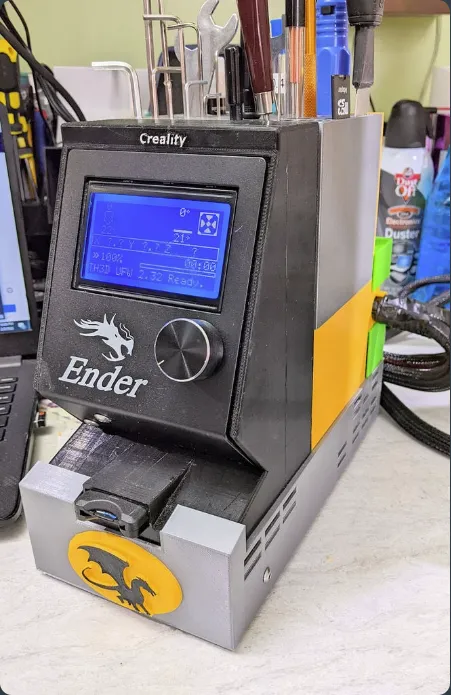 This enclosure is designed to hold all the electronics for the printer. It holds the MeanWell power supply, controller board (4.2.7), front control panel, Raspberry PI 4 and a buck converter to power Raspberry PI. Included in the files is a doc that lists many helpful items to perform the relocation of the electronics. All parts were printed using PLA from various vendors.