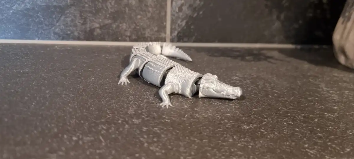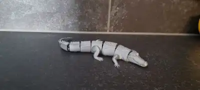 The body is divided into several interlocking segments—including the head, torso, and tail—which allow the model to bend, wiggle, and pose realistically. The back features a realistic, bumpy texture typical of crocodilians.