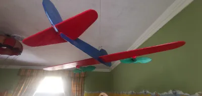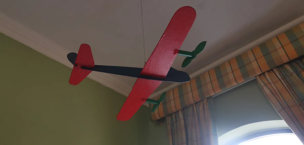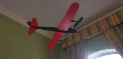The model was created for a children's room to decorate as a hanging toy. If it's hung near a window, the wind will give a sense of a flying, moving aeroplane.