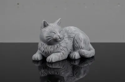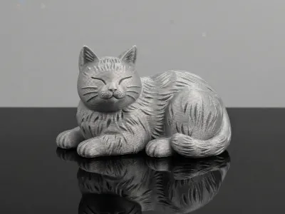Chubby Fluffy Cat - A Cozy 3D Minimalist Figurine