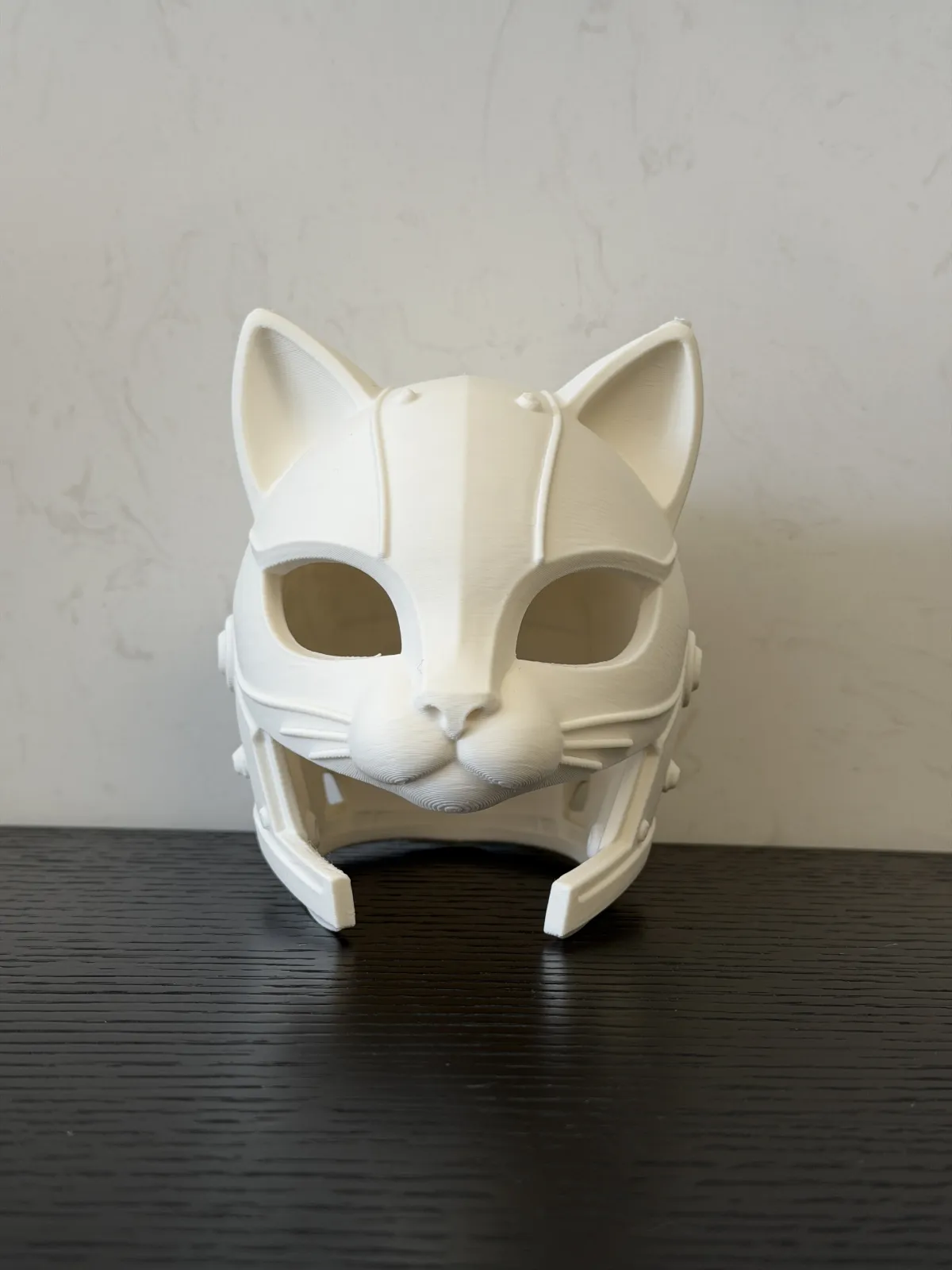 Cute, soft cat ears collide with bold, mechanical lines, exuding a premium tactile quality. The three-dimensional cat-face silhouette is sharply defined, with finely rendered whiskers and a delicately detailed nose tip. The hollowed-out eye openings strike the perfect balance between breathability and an immersive aesthetic. The design supports precise scaling based on the cat’s head circumference, making it an ideal personalized COS prop, dollhouse decor, or eye-catching desktop accent piece. Every layer of texture reveals meticulous craftsmanship, seamlessly blending cuteness with a cool, edgy vibe—wear it, and you’ll be the coolest mechanical cat knight around!