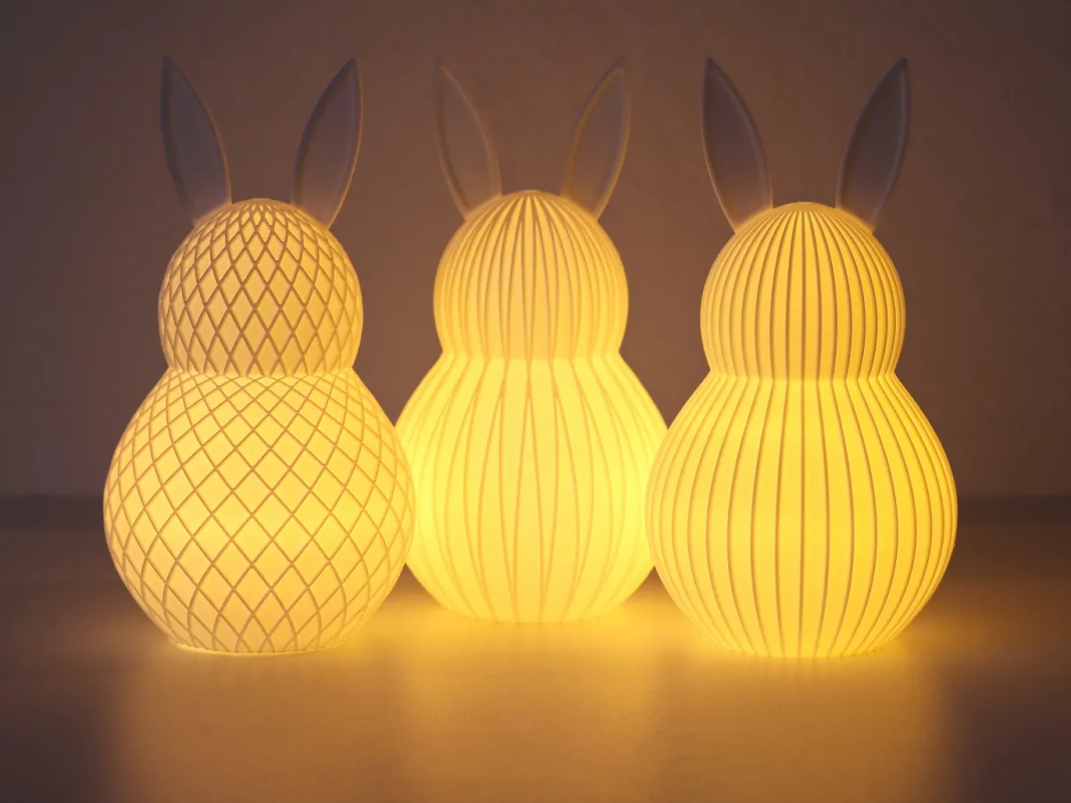 Each bunny is 15 cm tall and uses roughly 30 grams of filament.