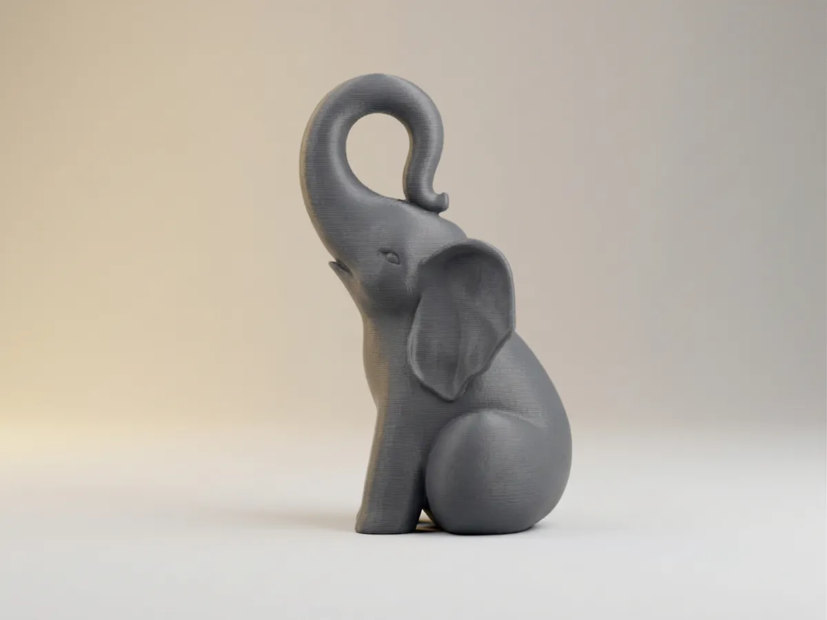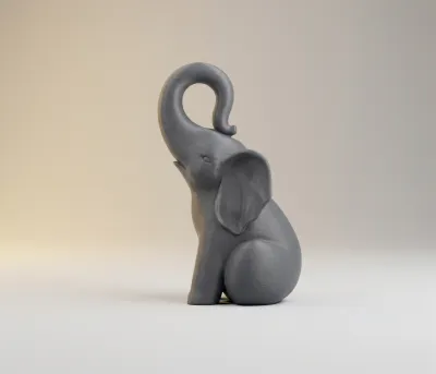 Serene Trunk Figurine - Experience serenity with this minimalist FDM-optimized elephant. No support required. Its elegant design and upturned trunk are perfect for a smooth PLA print, bringing a touch of calm to any space. Elevate your 3D printing today!
