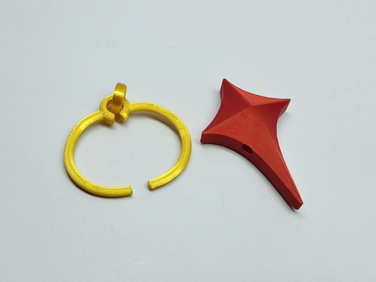 The model features a striking red star-shaped spike design paired with a yellow circular base, faithfully recreating the sharp lines and fantastical structure of the Flora Earrings while closely mirroring the decorative details found in the character’s official art and 3D models. It can serve as a themed collectible display piece or keychain pendant for “Naraka: Bladepoint,” and also complements cosplay outfits—making it a versatile gaming accessory that balances aesthetic appeal with practical functionality.