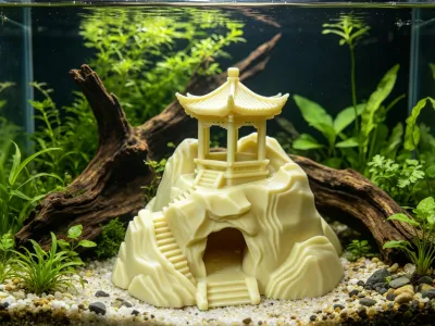 Its structure is robust and fully supported, with no overhanging or unsupported sections; it is printed in one seamless piece, eliminating the need for assembly and ensuring a high success rate. The material is safe and non-toxic, compatible with a wide range of printing filaments such as PLA and resin, and can be placed directly in the aquarium after printing. Alternatively, it can be dyed or aged to mimic the natural texture of real stone, making it suitable for various aquascaping styles.