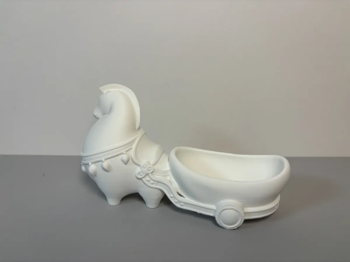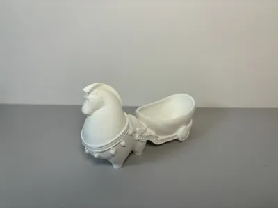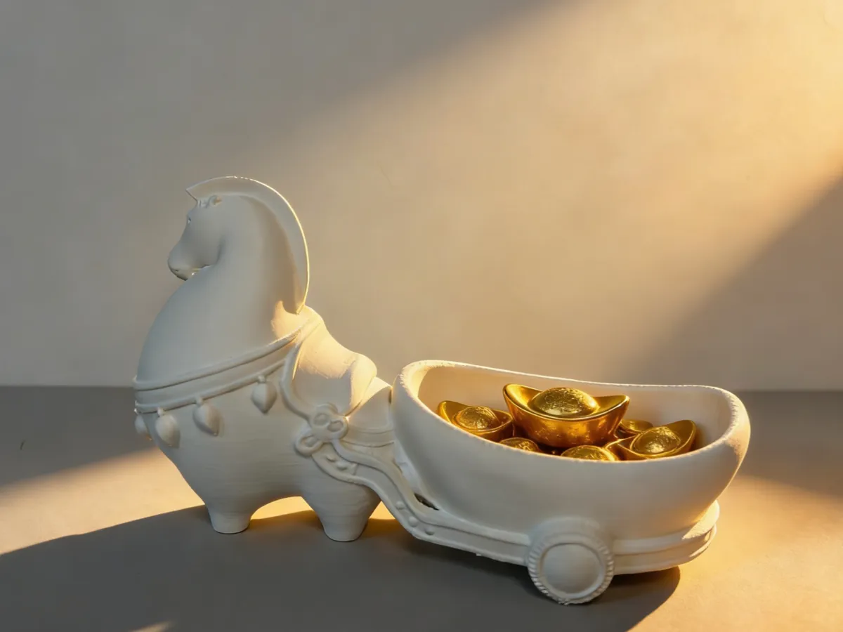 This Tang Dynasty Little Horse storage and display piece draws its design inspiration from the dignified posture of Tang Dynasty court horse figurines, seamlessly blending 3D printing technology with traditional Chinese auspicious culture to create a remarkable cultural and creative product for the Year of the Horse—combining practical storage functionality with artistic decorative value. The overall design features a cute, Q‑style rendition of the Tang Dynasty little horse, with smooth, rounded lines and a body adorned with intricate traditional vine patterns and ornate beadwork, faithfully capturing the regal elegance of Tang horses. The curved storage slots, gently cradled by the little horse’s graceful form, are shaped to mimic the silhouette of a wealth‑gathering treasure bowl—echoing the auspicious symbolism of “attracting wealth and gathering treasures” while perfectly accommodating small items such as keys, jewelry, and nuts, offering both practical utility and eye‑catching aesthetics. As a festive gift choice for the Year of the Horse, this piece carries the heartfelt meaning of “horses bringing prosperity and blessings,” making it a truly creative and thoughtful way to convey New Year’s greetings.