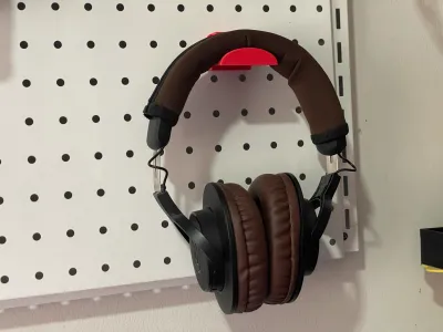 A sturdy pegboard-mounted headphone holder designed to keep your headphones safe and organized.
