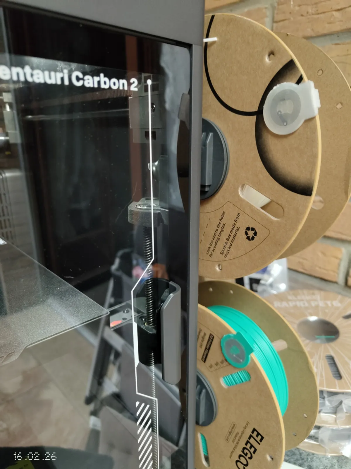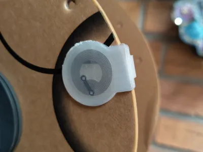 Reusable RFID tag support in the filament’s color. This adhesive label is readily available online, featuring a blank NFC NTAG213 chip with a 25mm diameter, ready to be programmed using the ELG RFID app. I’ve tested and approved it myself; however, this app only works with ELEGOO spools. While the TigerTag app should also work, it hasn’t been tested yet, as the BETA version doesn’t function properly on my phone.
