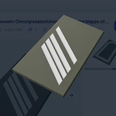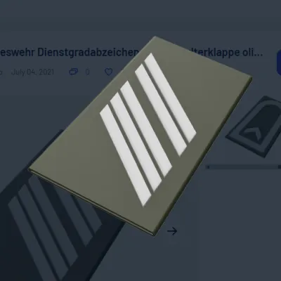Die Schulterklappen haben die gleiche Größe (51/57 - 91 mm) wie das Original. Es gibt die Option die Schulterklappen mit einem Aufsteller, z.B. auf den Schreibtisch zu stellen. Dann drucken sie bitte das "base_for_stand.stl" file.