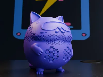 A cool high tech VR wearing cat, designed in a chibi style. This miniature comes in two versions, as a keychain or as a regular figurine, making it versatile for both collectors and everyday use.