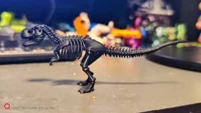 A meticulously crafted Tyrannosaurus rex skeleton.