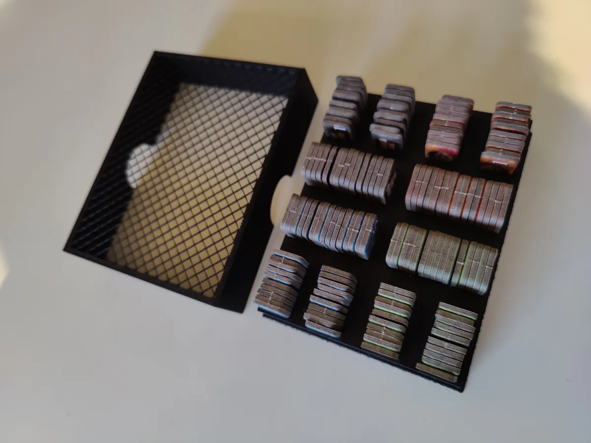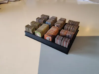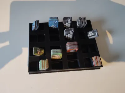 Here is a nice organizer for storing the points tokens of the game “Tigris & Euphrates”, Edge / FantasyFlightGames edition (2015 + up to 2019 for localizations). All the boxes with that cover should be compatible: